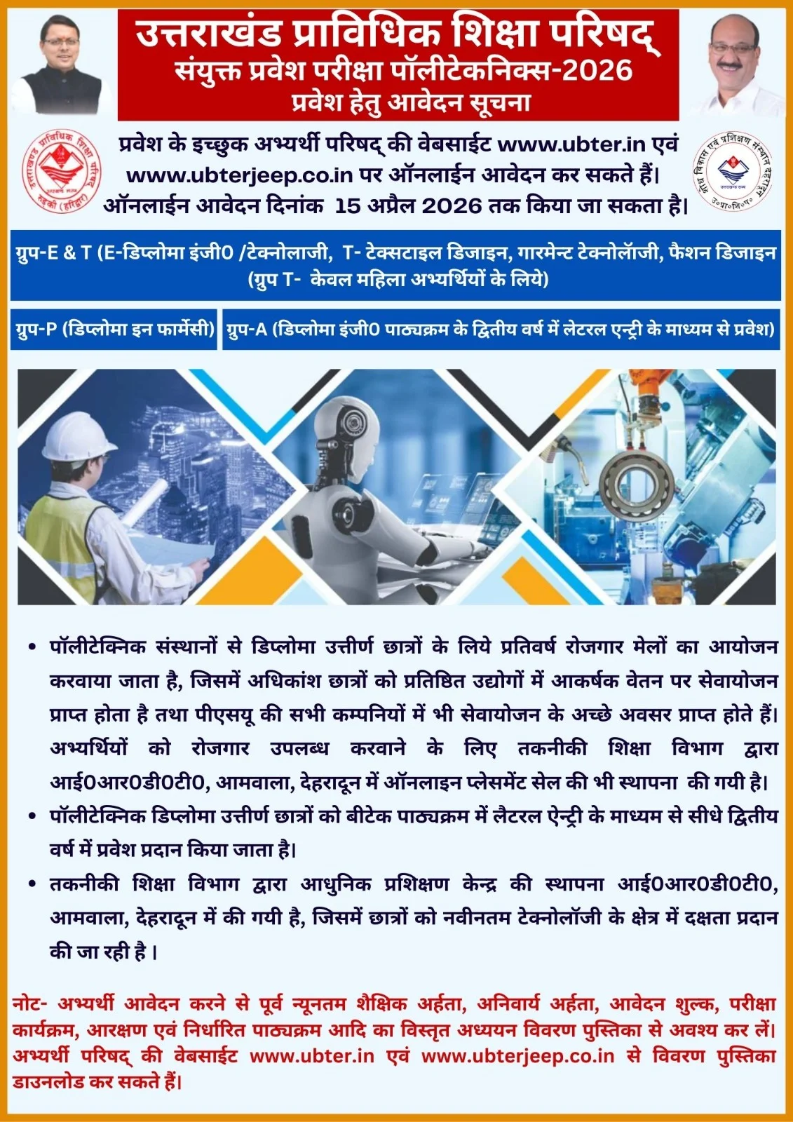 UBTER conducts exams and maintains high standards in technical education across Uttarakhand.